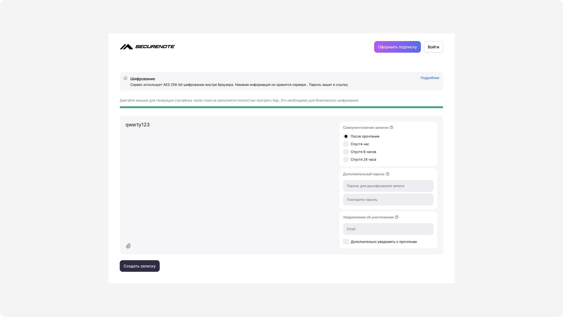 Сервис по передаче зашифрованных одноразовых записок.