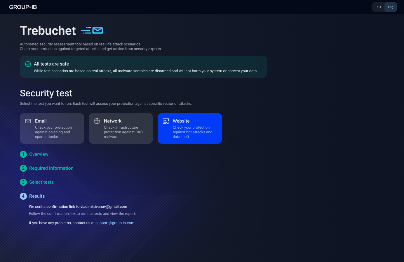 Автоматизированный инструмент Требушет оценки безопасности для тестирования защиты электронной почты и сети от потенциальных целенаправленных атак. Основан на реальных сценариях атак, благодаря которым реакция и реагирования моментальная. Выдаётся отчёт по результатам работы инструменты и разные рекомендации по улучшению защиты почты и/или сети.