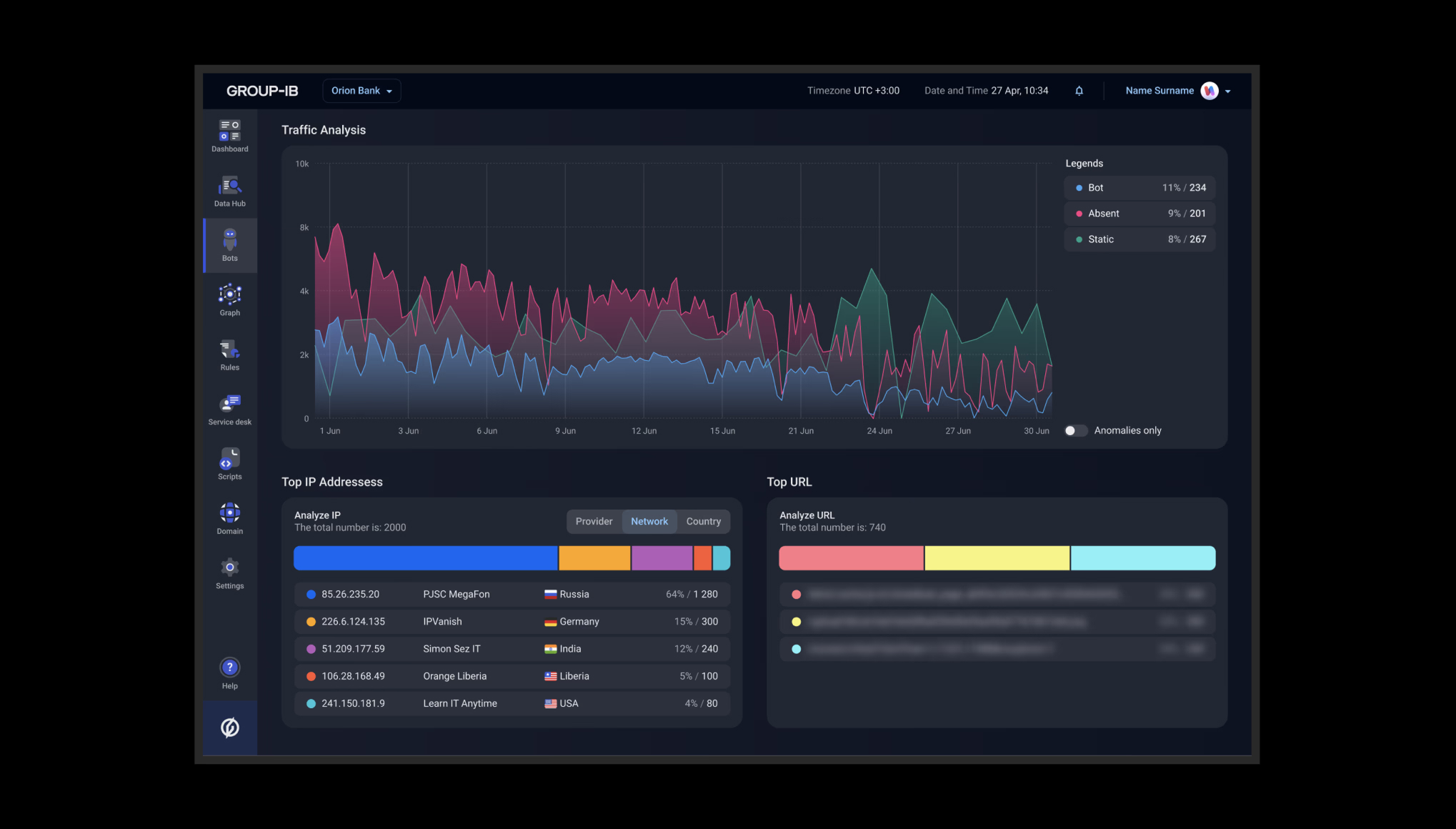 Были определены действия: просмотр общей статистики по ботам и их детали, идентификация и классификация ботов, настройка определённых правил для дальнейшего обнаружения ботов и т.д.