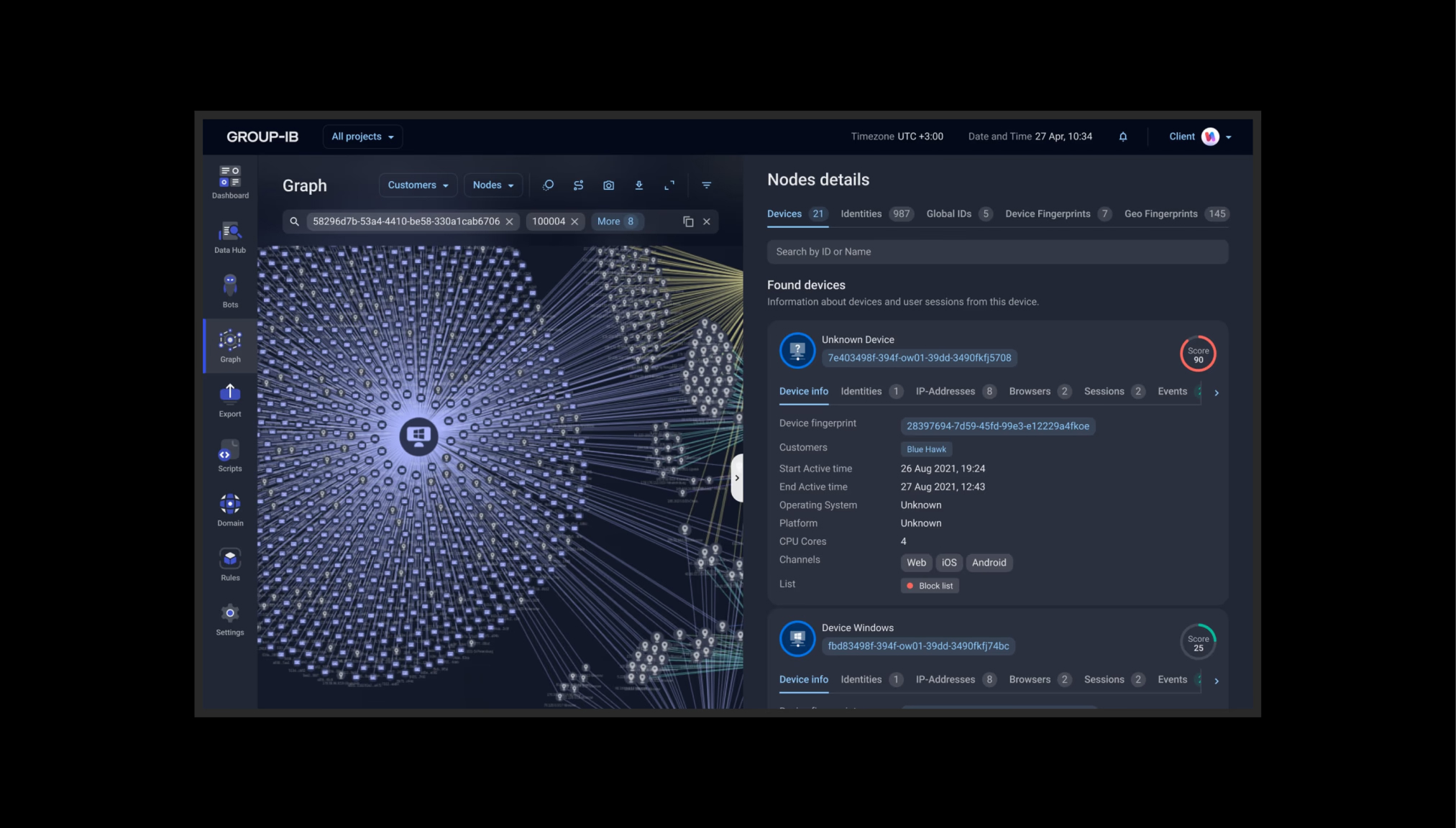 Защита бизнеса и клиентов от всех видов цифровых рисков, предотвращение мошенничества в режиме реального времени и защита цифровой личности пользователя.
