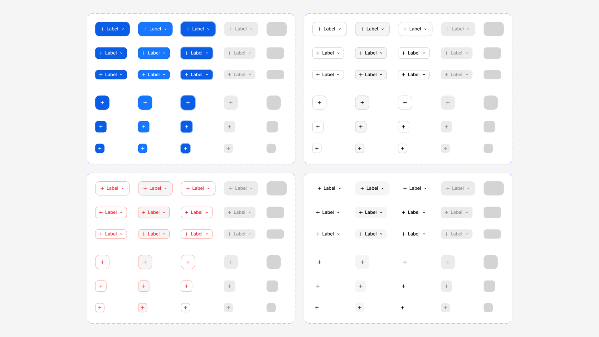 При создании больших количеств компонентов в одном варианте — происходит проблема с оптимизацией: «кушает» много памяти. По этой причине долгая загрузка макетов, двигаться по макету с лагами. Один из вариантов оптимизаций — создавать разные варианты. Как на примере с кнопками ниже, вариантов может быть много: primary, secondary, ghost, danger, success и т.д.