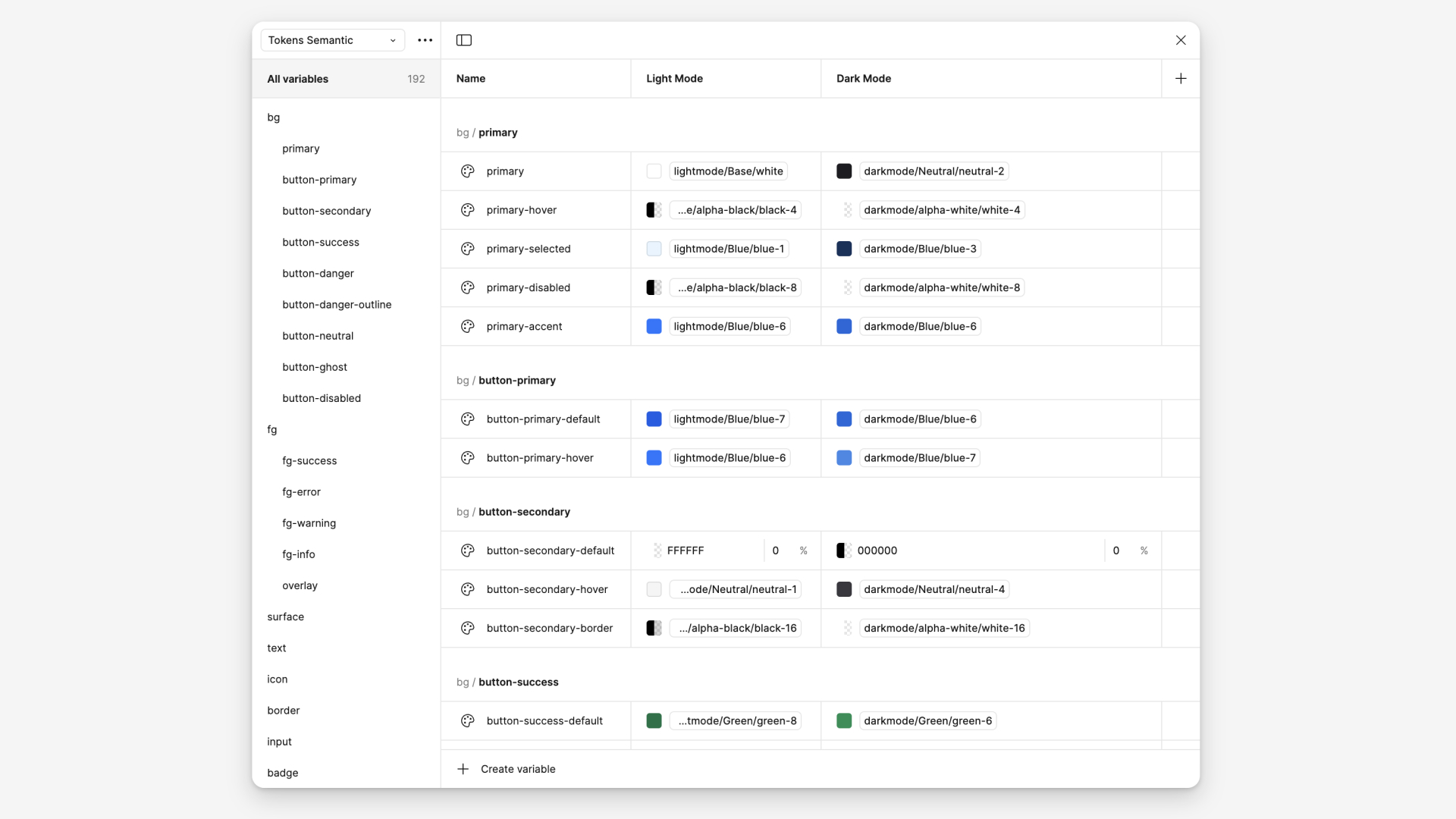 Примитивы разбиты на две группы: lightmode и darkmode, для заведения цветов в каждую тему и удобного управления, в случае каких-либо изменений.